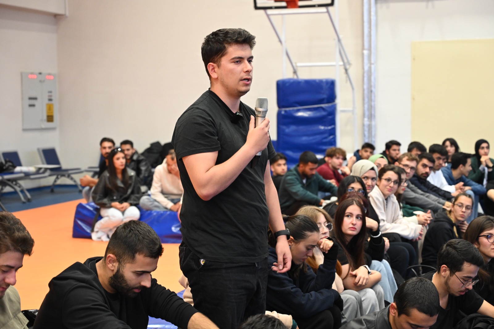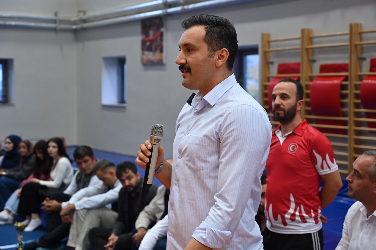 Spor Buluşmasına öğrencimizden büyük ilgi oldu. Spor Kompleksinde 1. katta bulunan cimnastik salonunda samimi bir Rektör öğrenci buluşması gerçekleşti.